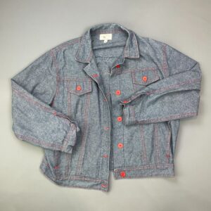 HAND MADE DENIM JACKET RED CONTRAST STITCHING EMBROIDERED PARROT