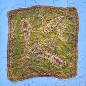 BEAUTIFUL SILK SCARF PRINTED AZTEC DESIGN ROLLED EDGES HAND STITCHED