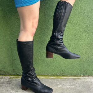 TRUE VINTAGE! 1960S-70S BUTTER SOFT KNEE HIGH BOOTS ROUND TOE & CHUNKY BLOCK HEEL, TALON ZIPPER