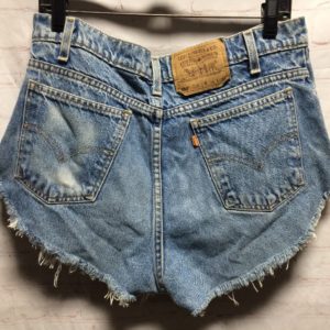 LEVIS CUT-OFF DENIM SHORTS W/ 4 FRONT SLASHED HOLES ORANGE TAG MID-RISE ZIP-UP