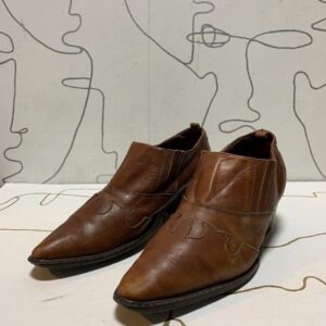 1990S BROWN LEATHER WINKLEPICKER ANKLE BOOTS WITH STITCHED APPLIQUE