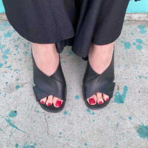 NATURAL WOOD RESIN HEELED LEATHER MULES