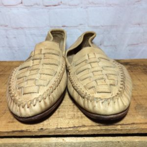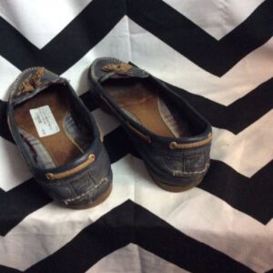SHOES/MOCASSINS – LEATHER – WHIP STITCHED – SLIP-ON FLATS – EMBOSSED DESIGN