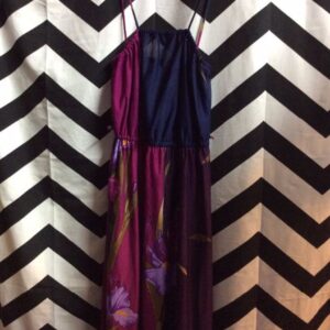 POLY DRESS THIN STRAPS NAVY PURPLE MAROON IRIS FLOWER