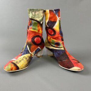 ABSTRACT COLORFUL PRINT STRETCHY BOOTIES ACRYLIC CRYSTAL BALL HEEL