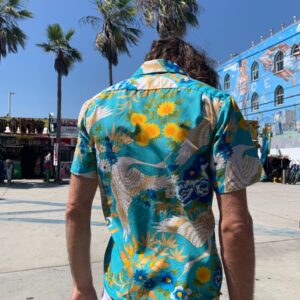 *AS-IS* RETRO 1970S POLYESTER CRANE PRINT HAWAIIAN SHIRT