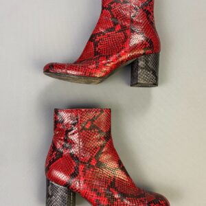 MADE IN ITALY RED SNAKE LEATHER CHUNKY BOOTIES SIDE ZIP