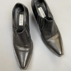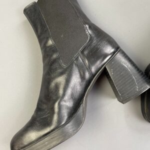 1990S POINTED TOE LEATHER STACKED BLOCK HEEL WINKLEPICKER BOOTIES