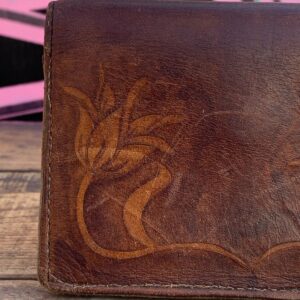 SUBTLE EMBOSSED TOOLED BROWN LEATHER FLOWER WALLET
