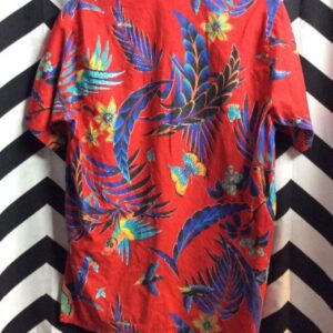 AS-IS FUN TROPICAL PARROT & TUCAN PRINT HAWAIIAN SHIRT