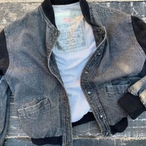 VINTAGE 1980S-90S LEVIS WHITE LABLE DENIM JACKET PINSTRIPED COTTON LINING RIBBED COLLAR & CUFFS