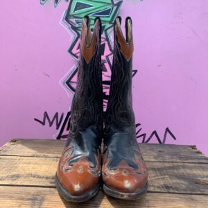 *AS-IS* 1990S 2-TONE HIGH POLISHED LEATHER ORNATE CUT-OUT POINTED TOE LEATHER COWBOY BOOTS