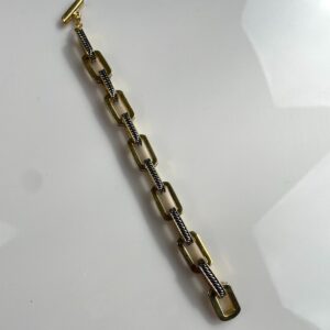 RAD! SQUARED 2-TONE HEAVY LINK CHAIN BRACELET TWISTED DETAIL INLAY
