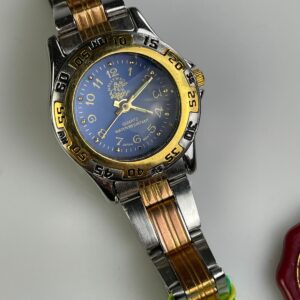 2-TONE STAINLESS STEEL WATCH BLUE DIAL HOLLYWOOD POLO 8000 WRISTWATCH