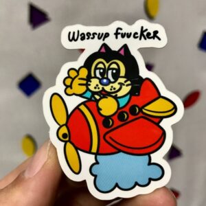 WASSUP FUUCKER CAT FLYING PLANE CRUM STICKER *LOCAL ARTIST