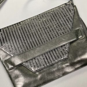 MADE IN FRANCE GORGEOUS EMBOSSED STRIPED LEATHER ENVELOPE SHOULDER BAG PURSE
