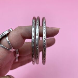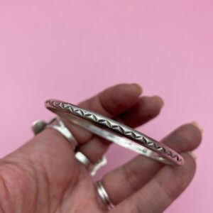 KILLER! CHEVRON ENGRAVED 925 STERLING SILVER BANGLE BRACELET *STAMPED MEXICO