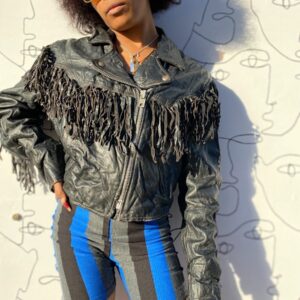 CUTE!! 1980S EMBROIDERED HARLEY DAVIDSON CROPPED LEATHER FRINGE MOTORCYCLE JACKET