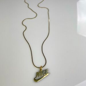 NIKE LOGO PENDANT ON SNAKE CHAIN NECKLACE SOLID BRASS SILVER PLATED
