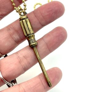 MINIATURE REPLICA SCREWDRIVER HEAVY SOLID BRASS PENDANT NECKLACE