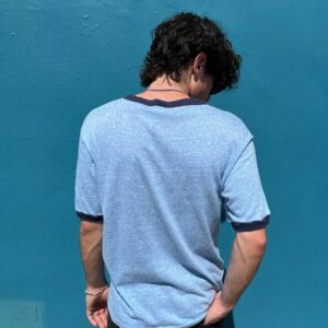 BOURBON ST. DRINKING TEAM LOGO HEATHER BLUE T-SHIRT RIBBED COLLAR & CUFFS