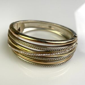 MULTI TONED CROSSOVER MIXED RHINESTONE CUFF BRACELET, MAGNETIC CLOSURE