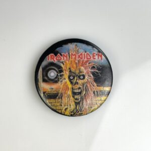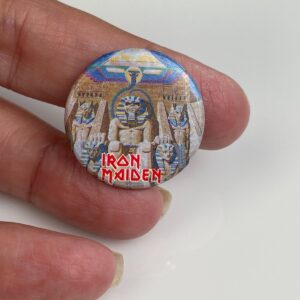 ORIGINAL 1980S IRON MAIDEN POWERSLAVE GRAPHIC BUTTON PIN