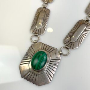 WOW! STUNNING 925 STERLING SILVER MALACHITE CONCHO NECKLACE, SIGNED L