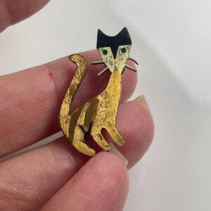925 BRUSHED STERLING & BRASS CAT BROOCH PIN *STAMPED MEXICO