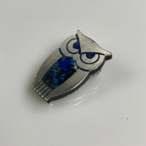 925 STERLING SILVER LAPIS AZUL INLAY OWL BROOCH PIN *STAMPED *SIGNED
