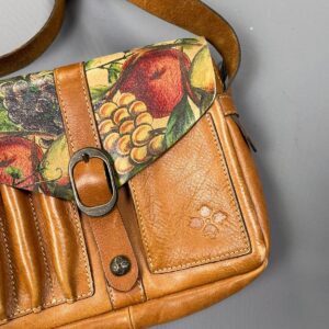 CUTE RETRO FRUIT PRINT LEATHER SHOULDER BAG BRASS HARDWARE