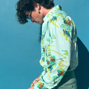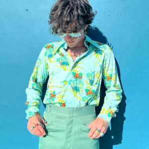 1950’S-60’S HORSE EMBROIDERED LINEN SUSPENDER SHORTS BUTTON UP KID SET