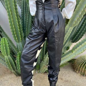 1980S HIGH WAIST PLEATED TAPERED LEATHER PANTS COIN POCKET