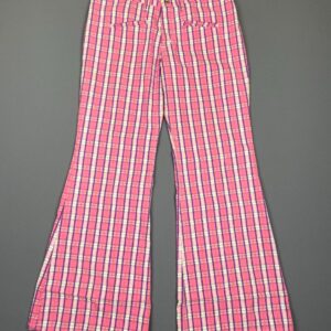 AWESOME 1970S BRIGHT PINK PLAID BELLBOTTOM PANTS DOUBLE COIN POCKETS