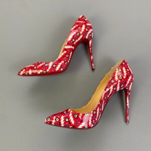 CHRISTIAN LOUBOUTIN PARIS RED BOTTOM INZANA OP ART PRINT PATTERN PIGALLE FOLLIES PATENT HEEL