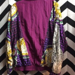 REVERSIBLE SILK ZIP-UP WINDBREAKER W/ CRAZY 1980’S ABSTRACT PRINT