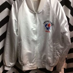 1988 BOMBER JACKET – SATIN – INVADERS – JOHN 3:16 – OLYMPICS IN SEOUL, KOREA – EMBROIDERED DESIGNS