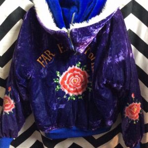 HOODED VELVET FAR EAST TOUR JACKET W/EMBROIDERED FLOWERS