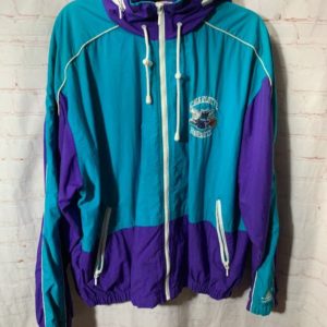 CHARLOTTE HORNETS ZIP-UP WINDBREAKER W/ COLOR-BLOCK DESIGN & EMBROIDERED LOGOS