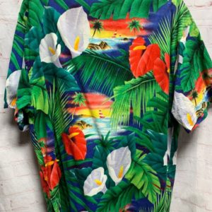 BRIGHT VIBRANT COLORED FLORAL PRINT COTTON HAWAIIAN SHIRT