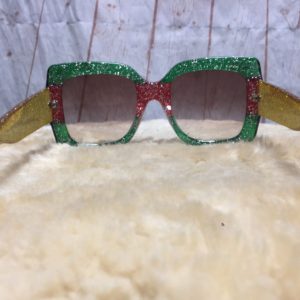 RASTA SPARKLE OVERSIZED GLITTER FRAMED SUNGLASSES YELLOW GREEN RED