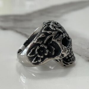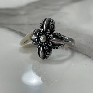 ORNATE CARVED FLOWER STAINLESS STEEL SILVER RING