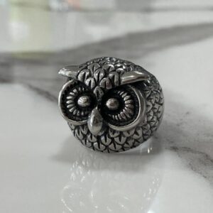 CLASSIC CARVED OWL HEAD WITH TEXTURED FEATHERS STAINLESS STEEL SILVER RING