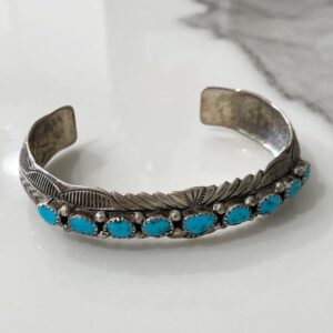 ORNATE CARVED STERLING SILVER & TURQUOISE NUGGET CUFF BRACELET *SIGNED WB