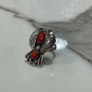 UNIQUE FLY SHAPED RING CORAL STONE INLAY