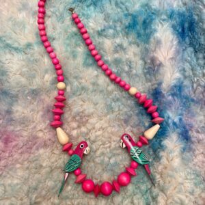 1980S HAND PAINTED WOODEN PARROT NECKLACE