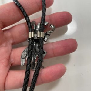 INTRICATE KACHINA FIGURINE BOLO TIE NECKLACE BRAIDED LEATHER CORD BOLERO