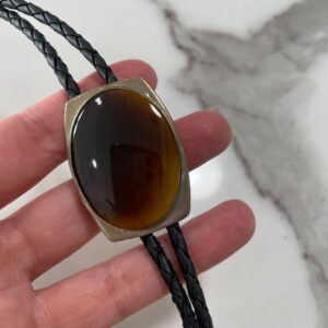 TIGERS EYE ENCASED POLISHED STONE BOLO TIE BRAIDED LEATHER CORD