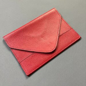 EMBOSSED REPTILE LEATHER RED ENVELOPE STYLE WALLET FLAP CLOSURE FULLY LINED
