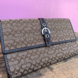 1990S | Y2K COACH JACQUARD MONOGRAM LEATHER LADIES WALLET BUCKLE CLOSURE *AUTHENTIC